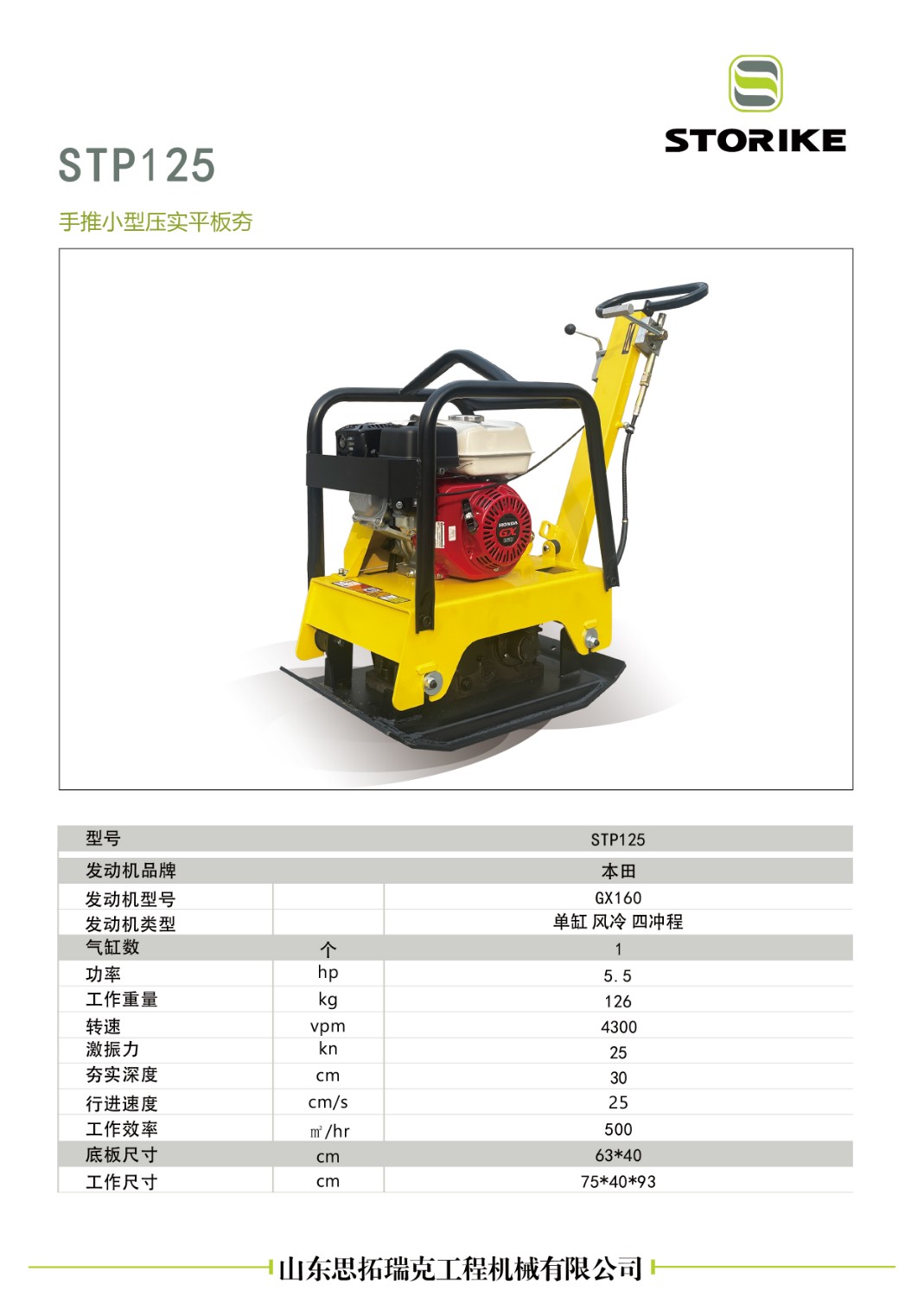 山東思拓瑞克工程機械有限公司-STP125平板夯